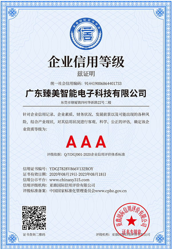 企業(yè)信用3A等級證書