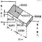 如圖5-4所示,整個(gè)陶瓷片分成兩部分,左部為輸入端(又稱(chēng)驅(qū)動(dòng)部分),上、下面都有燒滲的銀電極,沿厚度方向極化,右部為輸出端(又稱(chēng)發(fā)電部分),其右端面有燒滲的銀電極。沿長(zhǎng)度方向極化。當(dāng)輸入端加上交變電壓時(shí),由于逆壓電效應(yīng),瓷片產(chǎn)生沿長(zhǎng)度方向的伸縮振動(dòng),將輸入電能轉(zhuǎn)變?yōu)闄C(jī)械能;而發(fā)電部分則通過(guò)正壓電效應(yīng),將機(jī)械能轉(zhuǎn)變?yōu)殡娔埽瑥妮敵龆溯敵鲭妷?。無(wú)負(fù)載時(shí),開(kāi)路升壓比為: